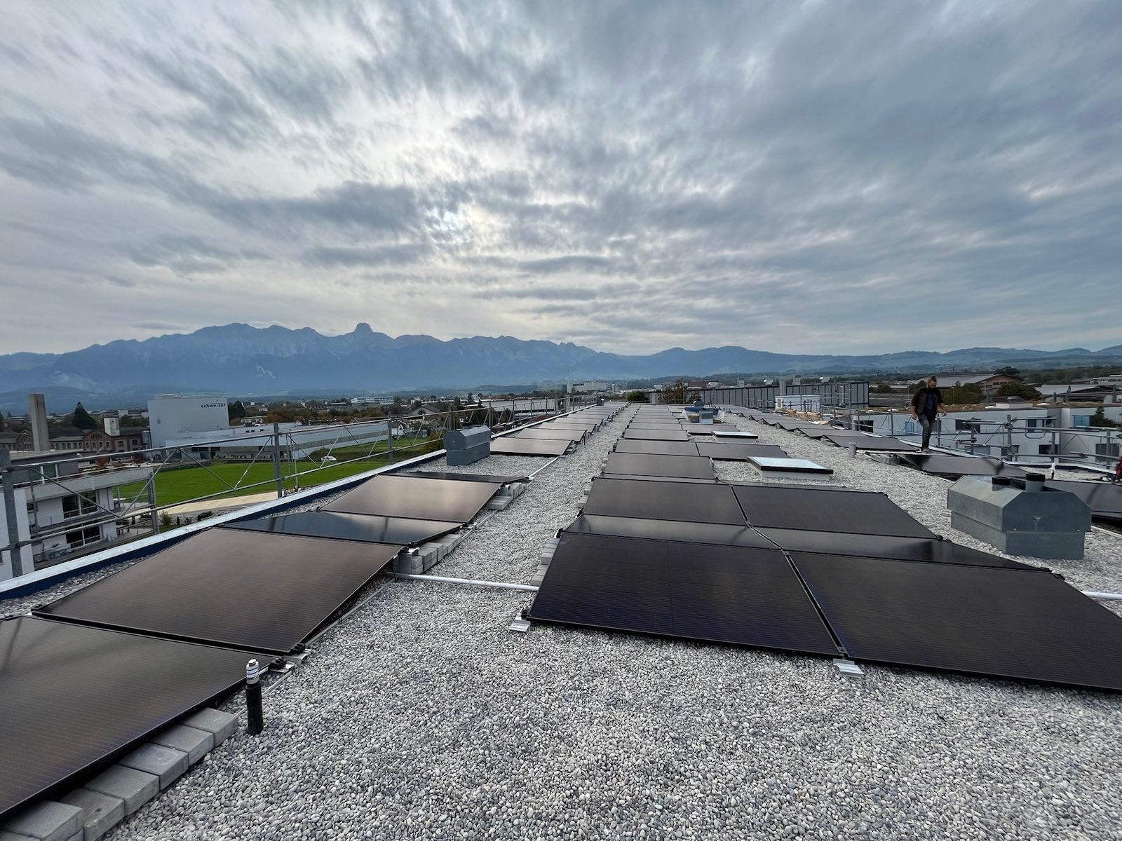 Im Zuge einer Dachsanierung entstand in Steffisburg eine ästhetisch integrierte Ost-West-Solaranlage, die harmonisch im Kiesbett des Flachdachs eingebettet ist. Besonderes Augenmerk lag auf der Abstimmung mit der Absturzsicherung und einer stabilen Befestigungslösung.