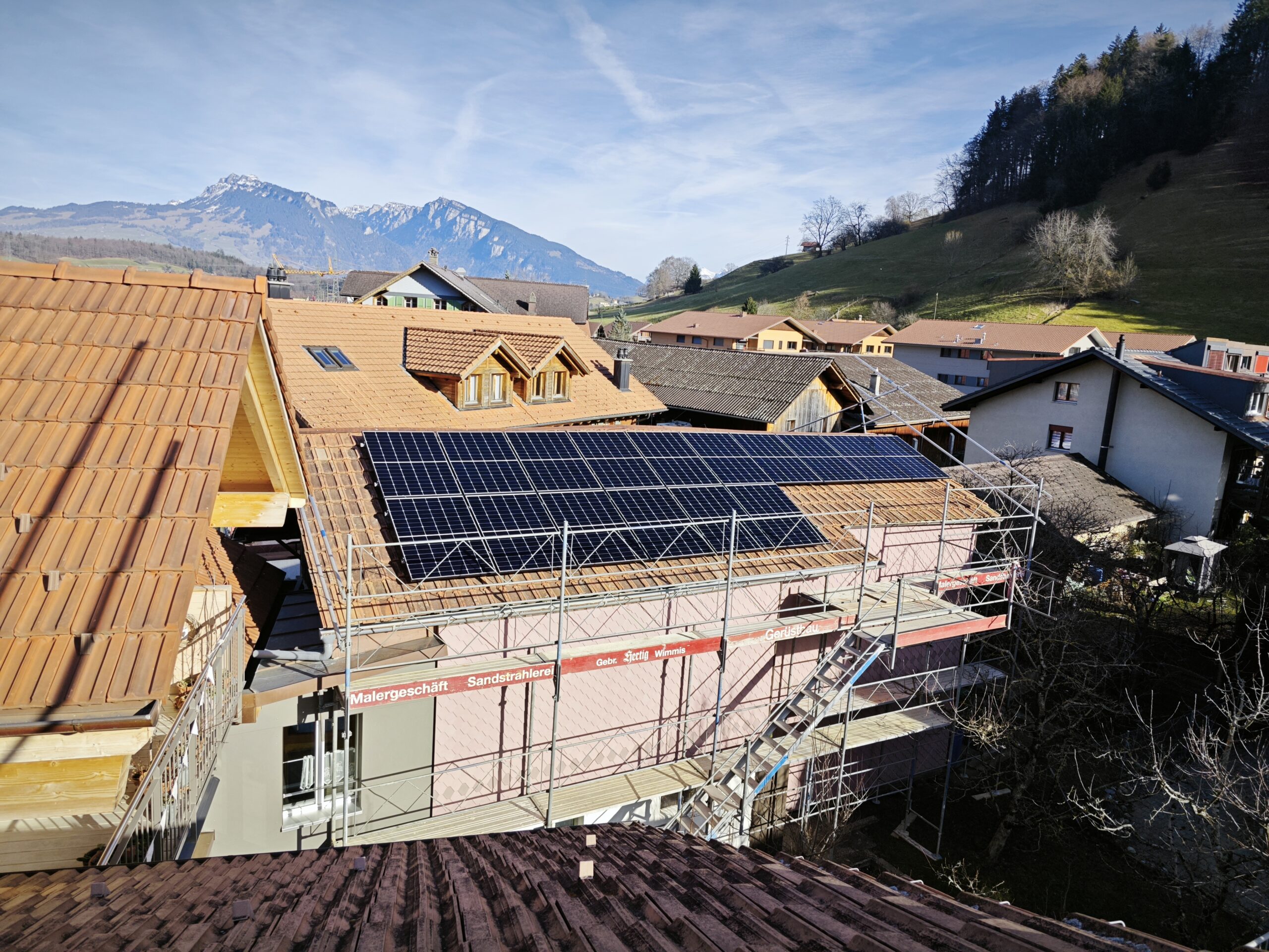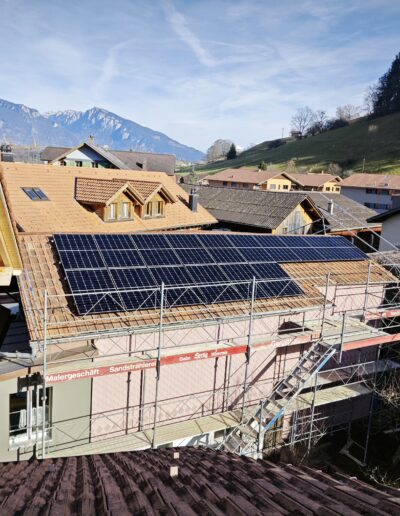In Wimmis wurde zunächst eine klassische Aufdachanlage mit einem smart-me ZEV-System installiert, um den Solarstrom im Mehrparteienhaus optimal zu verteilen. Die Anlage sorgt für eine faire und transparente Abrechnung zwischen den Bewohner:innen.