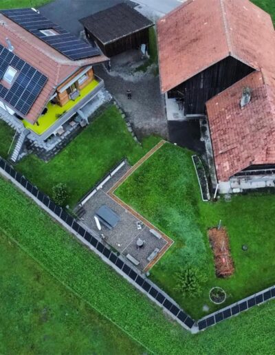 Mit einer Autarkie von 85 % versorgt sich das Gebäude nahezu vollständig selbst. Besonders erwähnenswert: Für den Solarzaun war ein Baugesuch notwendig, welches vollständig von Solarchraft vorbereitet und eingereicht wurde. Das Projekt zeigt eindrucksvoll, wie Solarenergie kreativ integriert und optimal genutzt werden kann – technisch anspruchsvoll und perfekt abgestimmt auf die Kundenbedürfnisse.