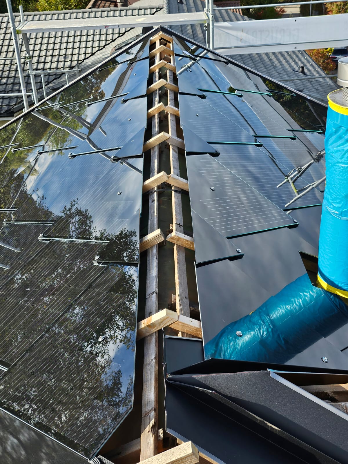 In Wabern wurde eine umfassende Dachsanierung mit dem eleganten SunStyle Solarsystem realisiert. Diese Indachlösung verbindet Design und Funktion zu einer homogenen Dachfläche, die sowohl schützt als auch Energie liefert.