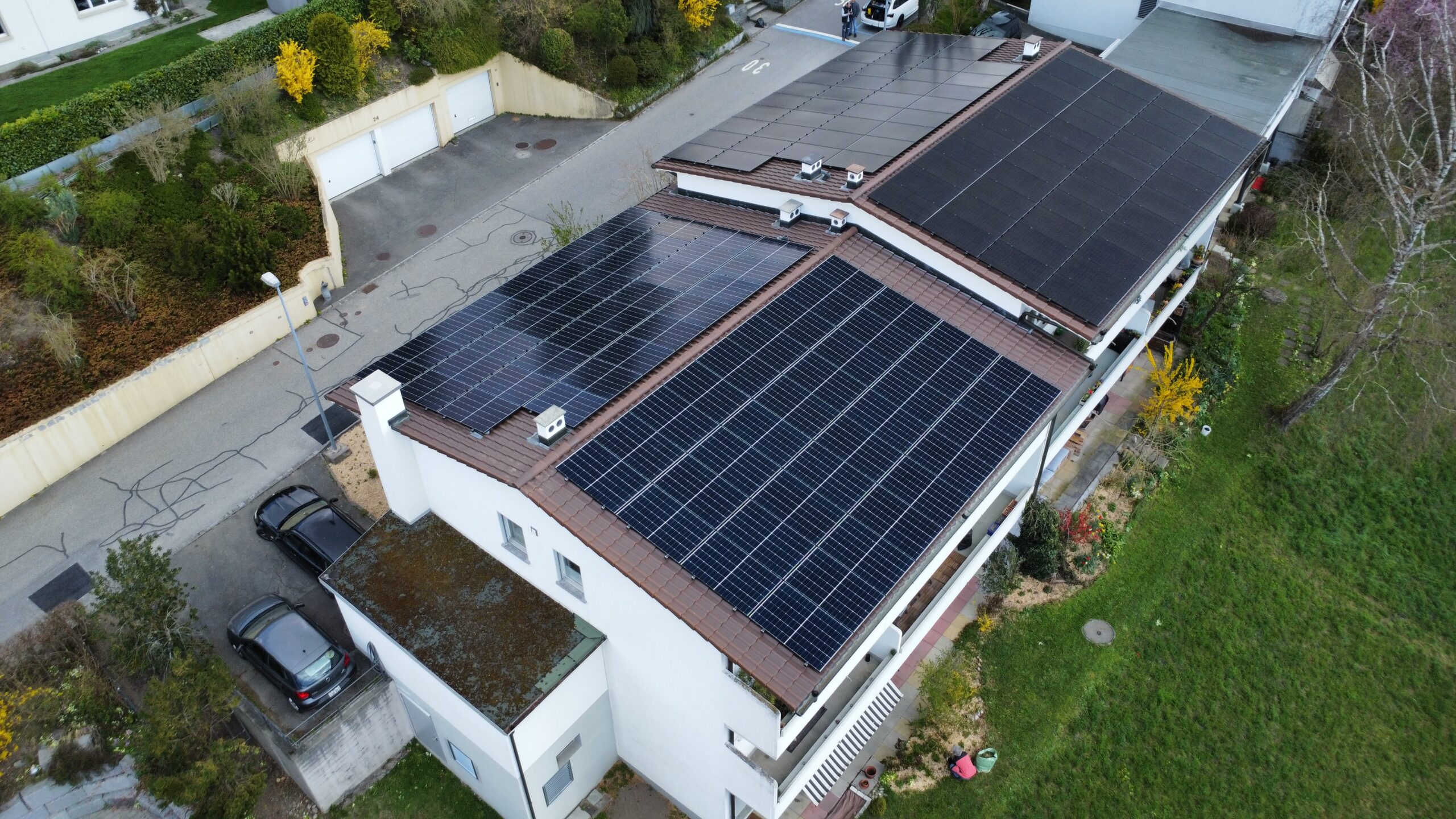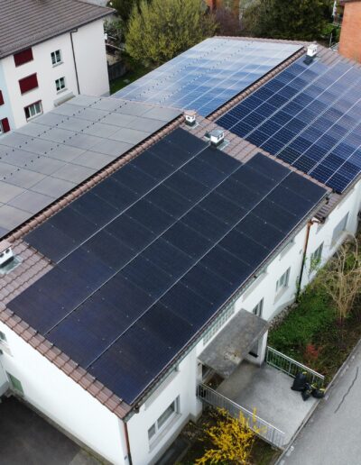 In Ittigen realisierten wir eine Aufdachanlage kombiniert mit einer Heizungsoptimierung über Solarmanager. Die smarte Steuerung sorgt dafür, dass erzeugter Strom gezielt für Warmwasser und Heizung verwendet wird.
